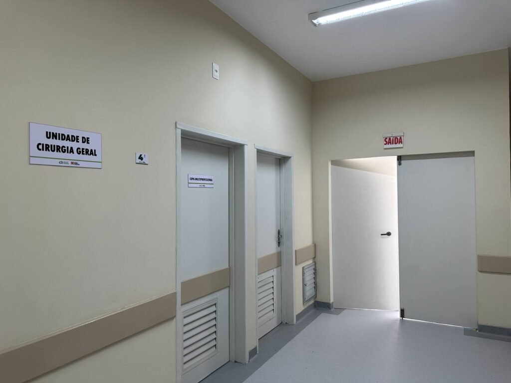 A Unidade de Cirurgia Geral conta com 24 leitos de enfermaria e recebe, mensalmente, cerca de 150 pacientes. O setor é integrado às demais áreas de internação e preparado para oferecer suporte integral no período pós-operatório.